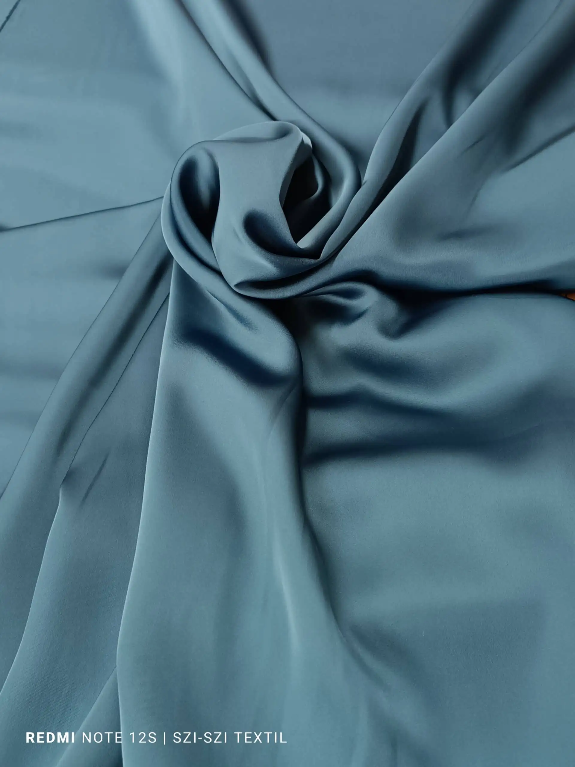 Tapintása hűvös, felülete rendkívül sima és sejtelmesen fénylő, ezáltal gyönyörű megjelenést biztosít. Alapanyaga 100% poliészter, de nagyon finom, vékony szálakból szőtték, érzetre és viselkedésre is megtévesztésig hasonlít a hernyóselyemre.