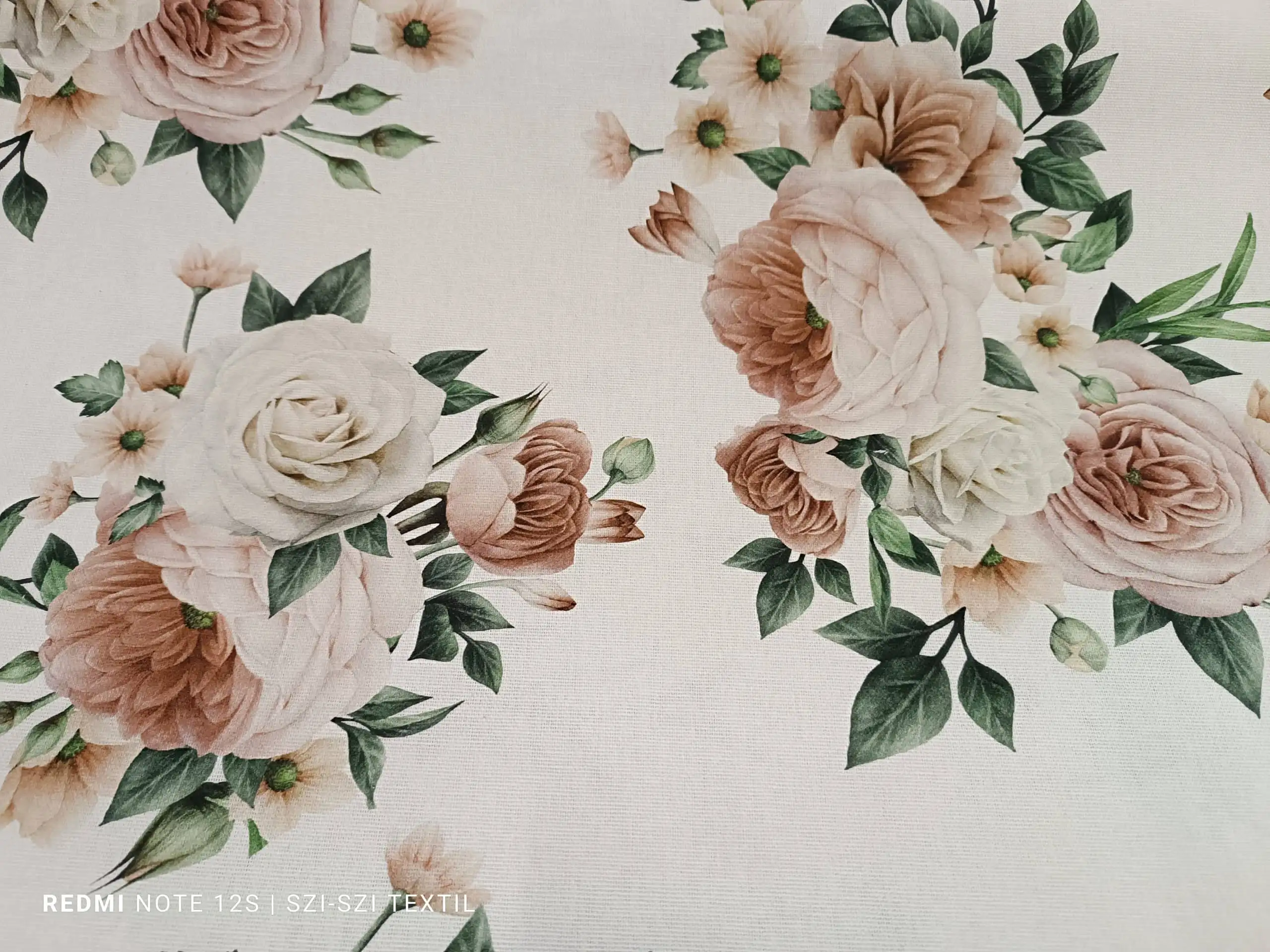 Rózsás dekoranyag, 100% pamut alapanyagból készült.