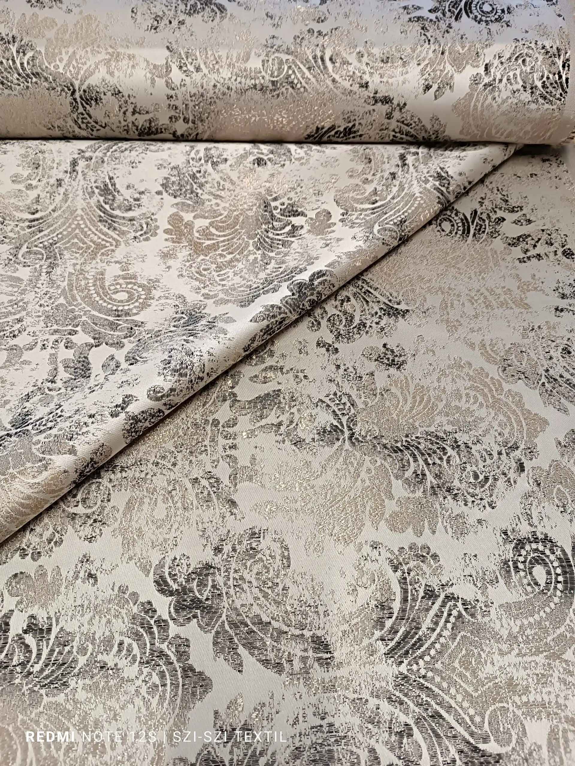 Arany-fekete mintás dekor anyag.