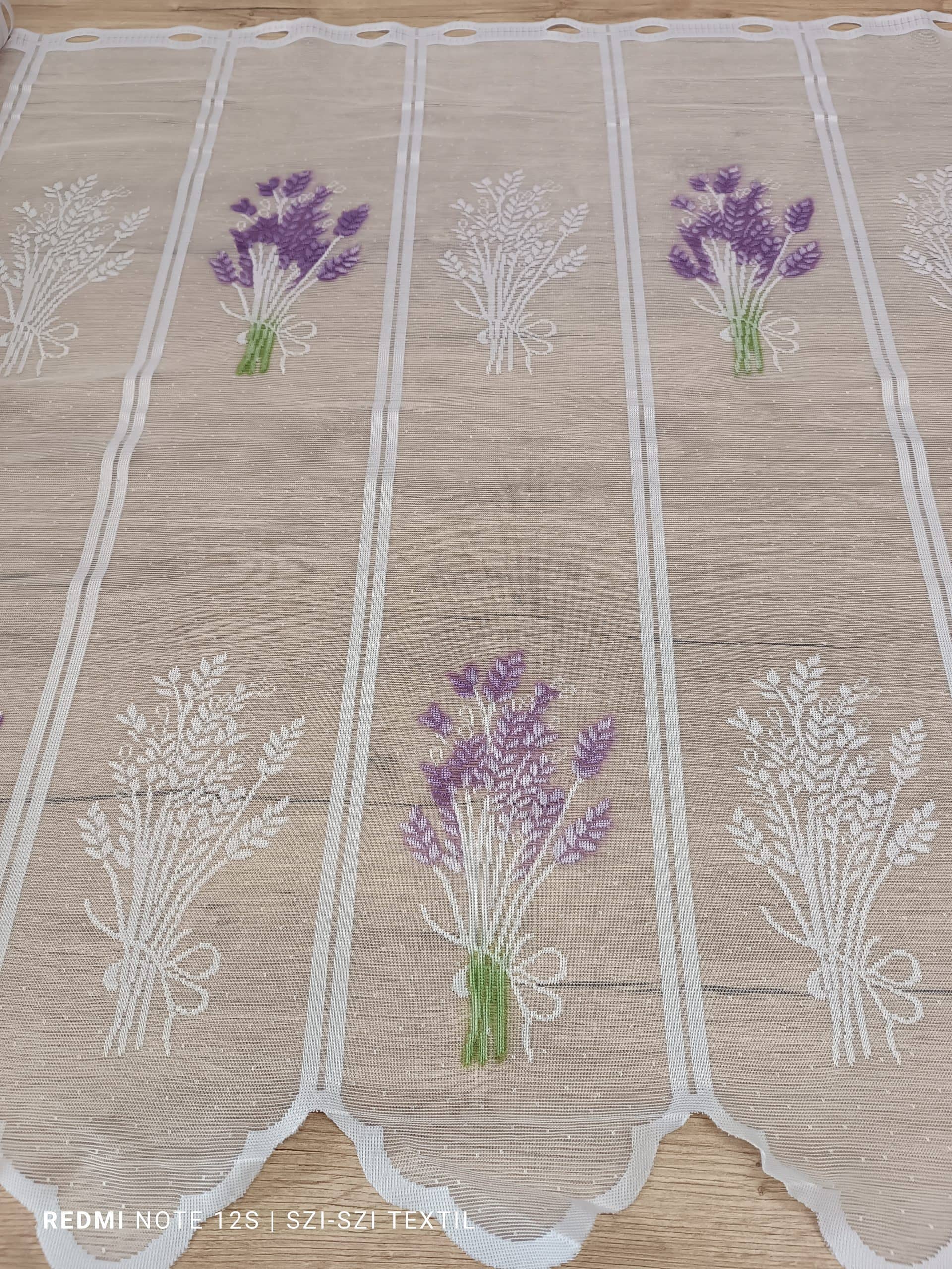 Levendula mintás jacquard vitrázsfüggöny, 90cm magas.