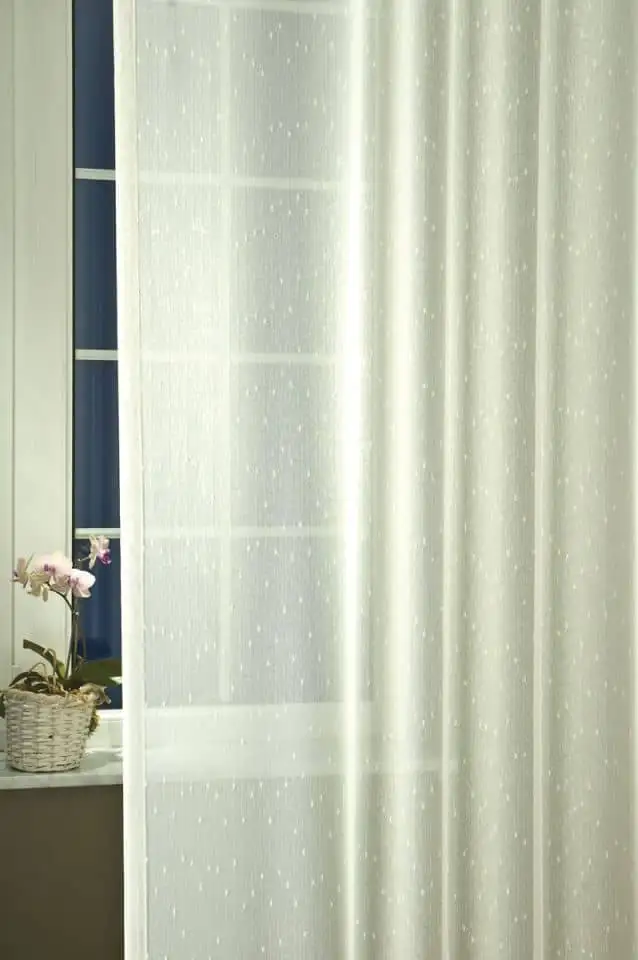 Noppos sablé, ekrü színű 300cm magas, ólomzsinór van az alján.