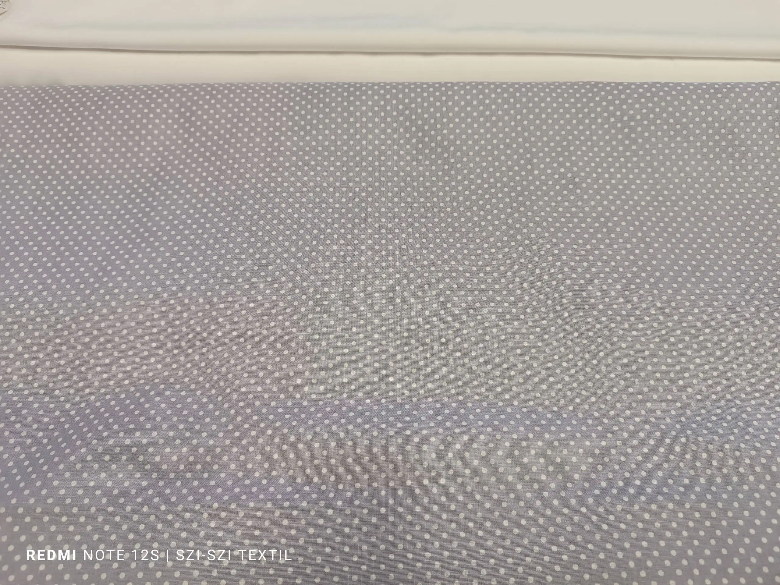 Pasztel lila alapon fehér pöttyös pamutvászon. 100% pamut, sokoldalúan felhasználható.