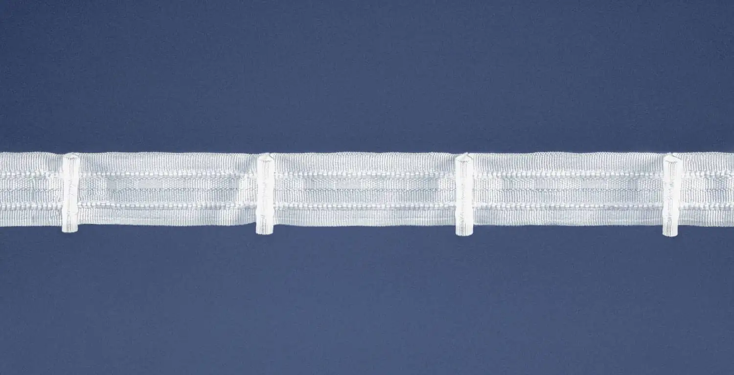 1:1,5x anyag mennyiség szükséges, egyet húz, 2,3cm széles, fehér textil.