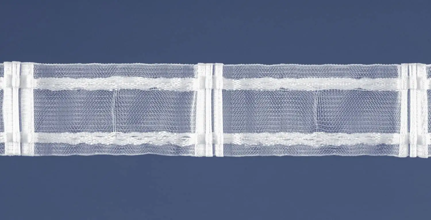 1:2,2x anyag mennyiség szükséges ehhez a ráncolóhoz. Átlátszó, 5cm széles, 3 csokros mintát húz.