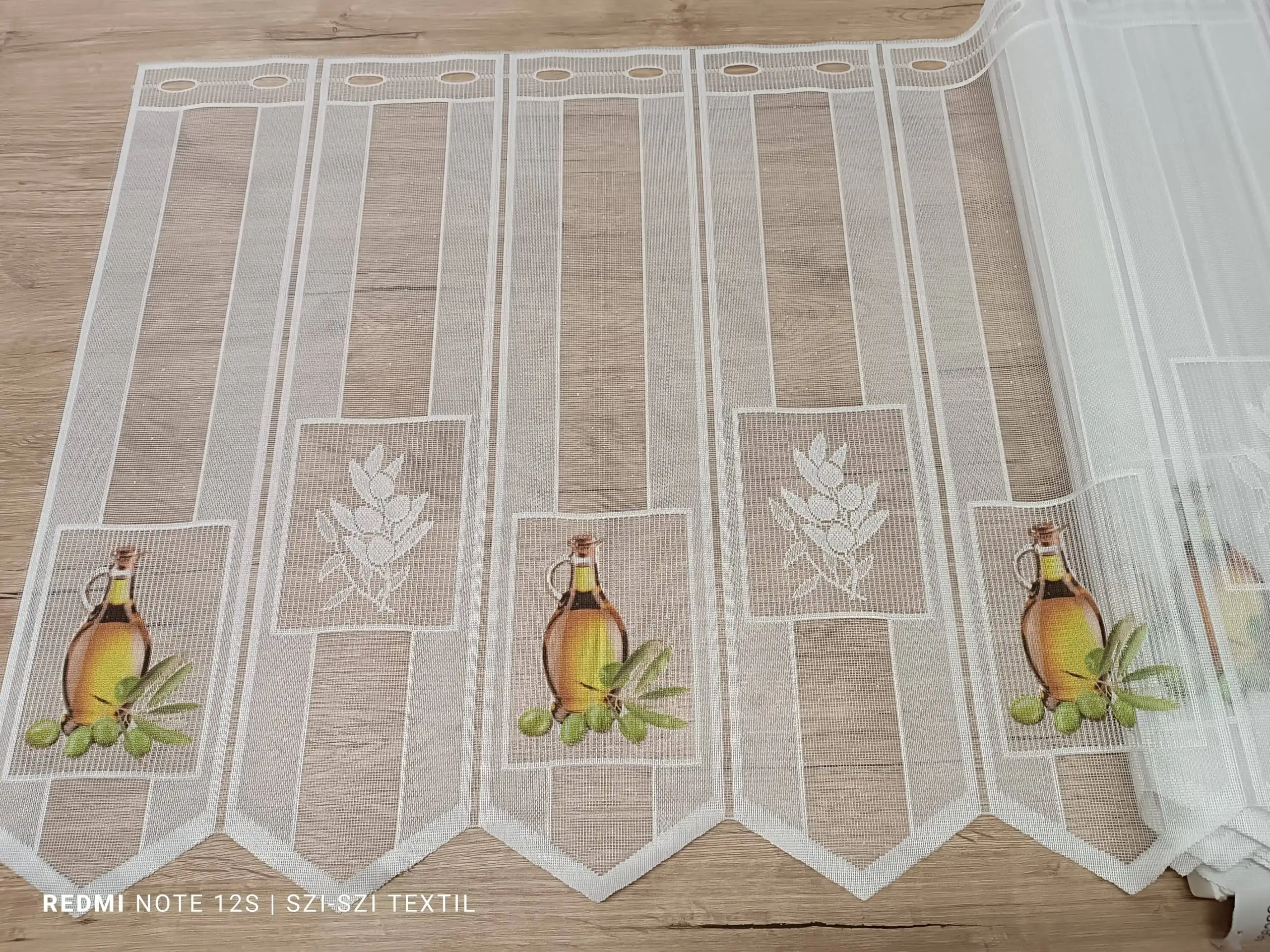 Vitrázs függöny 60cm fehér jacquard, olívaolaj mintás.