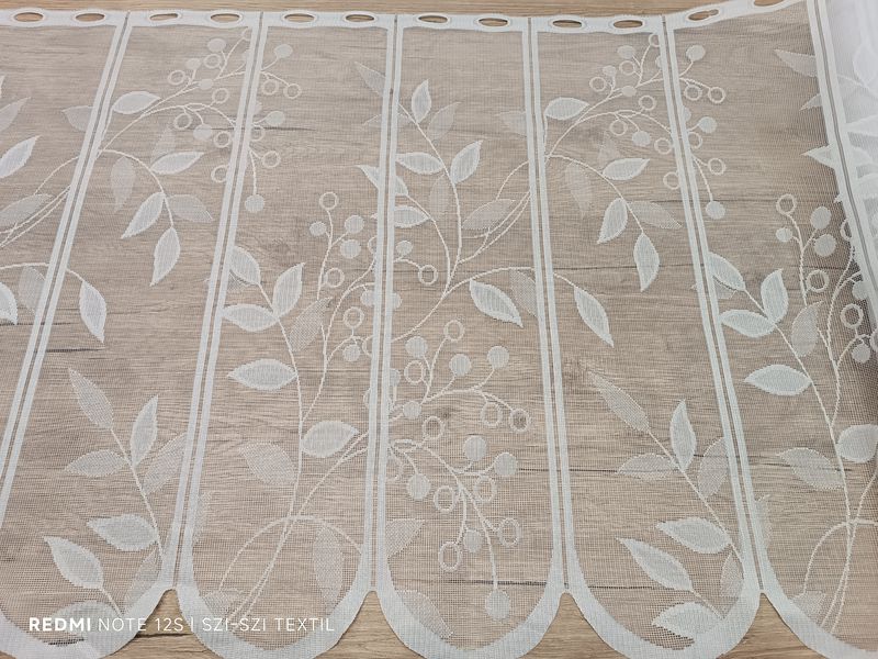 “Indás, leveles” mintás jacquard vitrázs, 60cm magas.